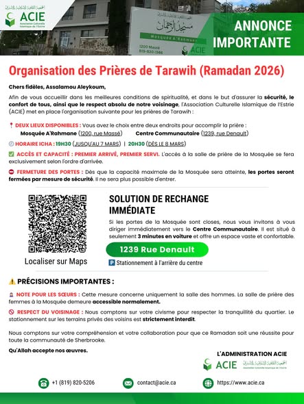 Organisation des Tarawih — Ramadan 2026