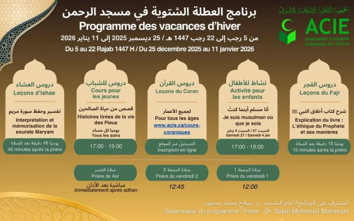 Programme des vacances d'hiver à la mosquée A'Rahmane