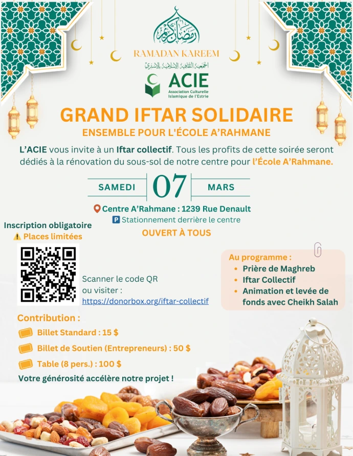 L'AMUS, en partenariat avec l'ACIE, vous invite à un Iftar collectif !